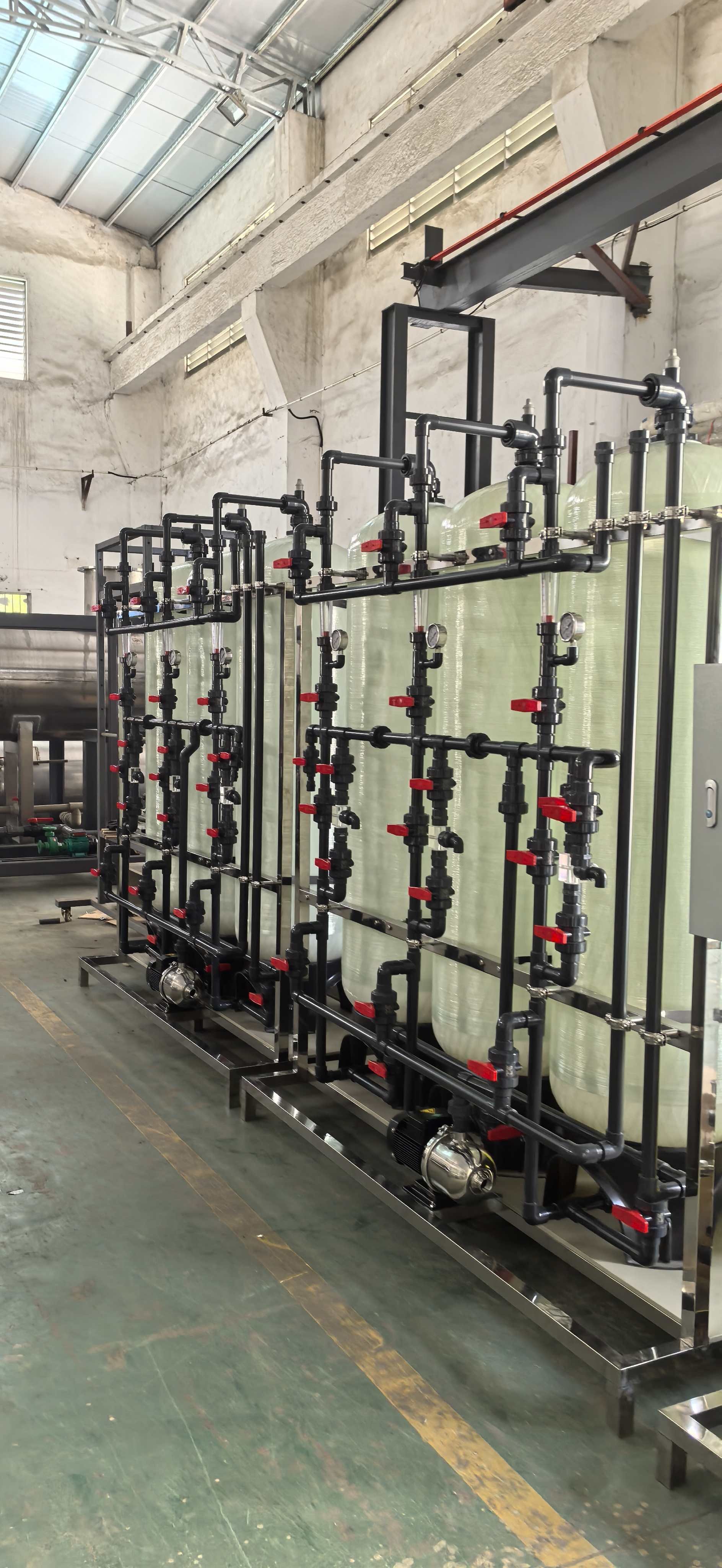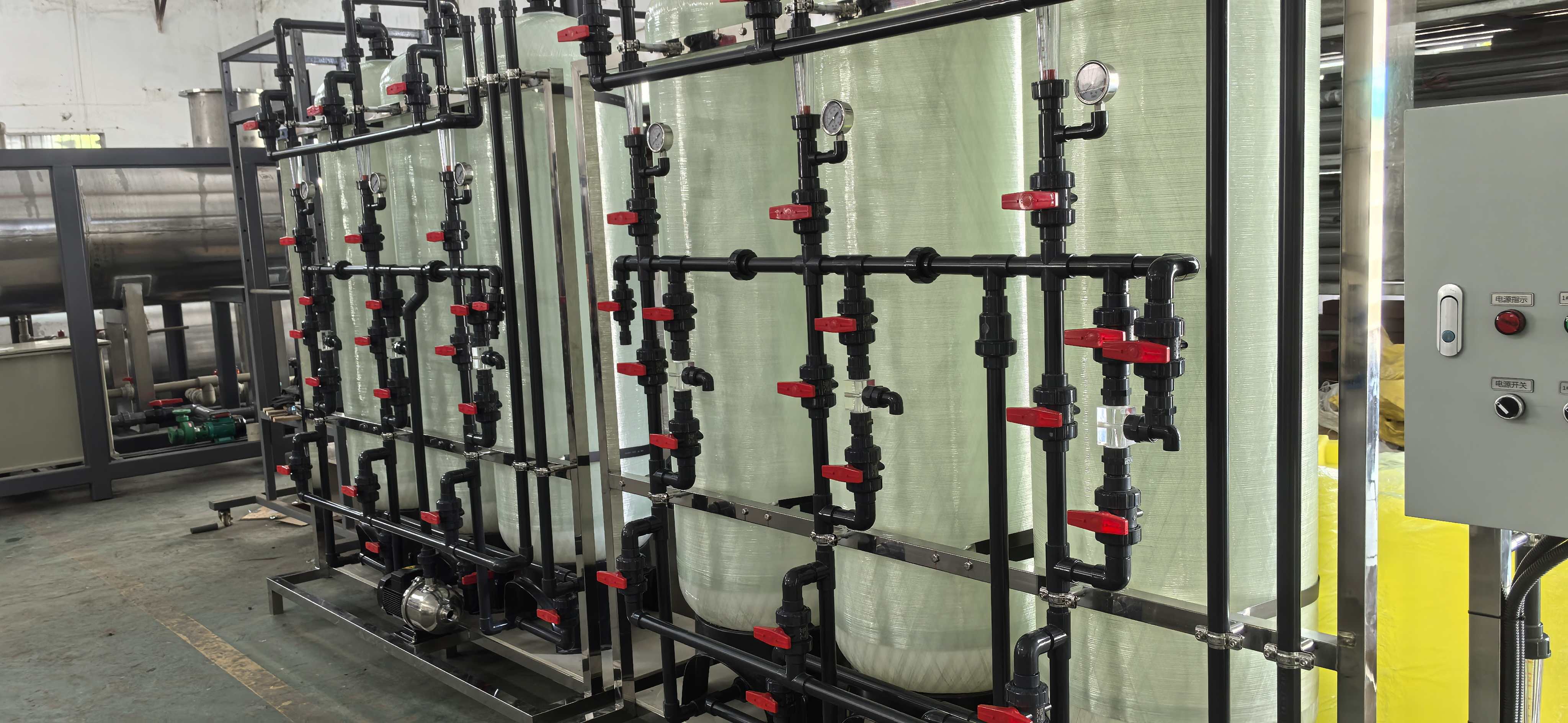 以下案例为我公司为国投某企业定制的离子交换设备,以及脱色系统离子交换柱。特点:可串联,并联灵活切换,自动吸酸碱。制作好效果如下:
